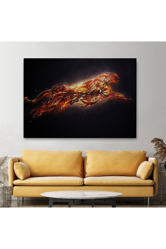 Altın Renkli Koşan Çita Kanvas Tablo, Hayvan Duvar Sanatı, Büyük Kanvas Tablo-5380