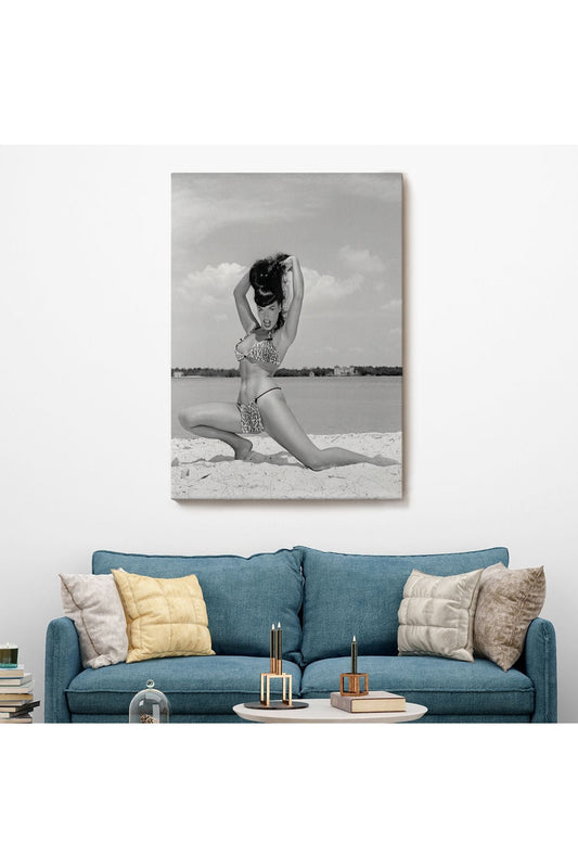 60% İndirimLeopar Bikinili Bettie Page Duvar Tablosu-6053