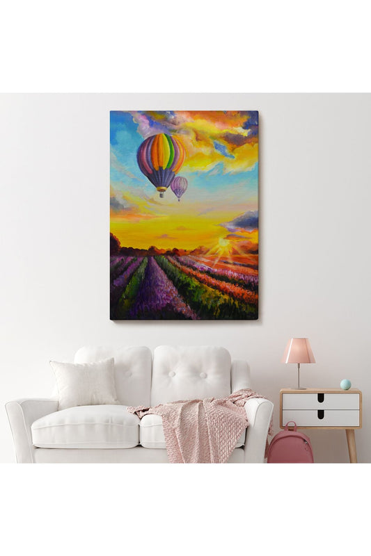 Lavanta Bahçesi Üzerinde Uçan Hava Balonu Yağlıboya Görünüm Kanvas Duvar Tablosu-5940