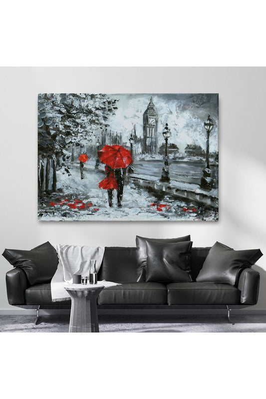 Londra Sokakları Yağlıboya Görünüm Dekoratif Kanvas Duvar Tablosu-3507