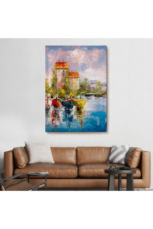 Liman Manzarası Yağlıboya Görünüm Dekoratif Kanvas Duvar Tablosu -5981