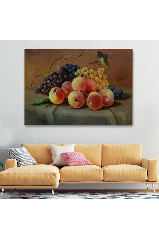 Masadaki Meyveler Yağlıboya Görünüm Dekoratif Kanvas Duvar Tablosu-3632