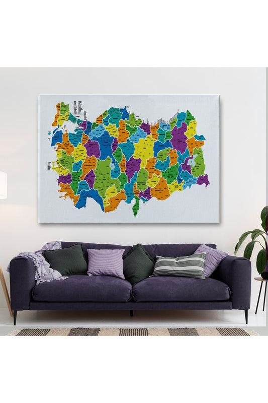 arg001 seri Türkiye Haritası Kanvas Tablo İl ve İlçeli Ayrıntılı Eğitici Dekoratif Tablo 3032