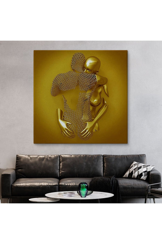 Metalik Efektli Modern Kanvas Tablo, Romantik Beden, 3D Efektli Aşk Sanatı-5364