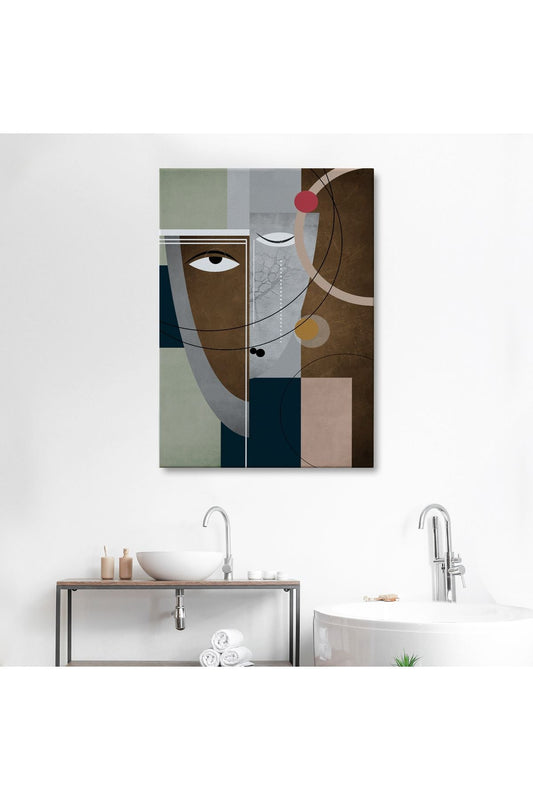 Modern Soyut Geometri El Boyaması Güzel Yüz Kanvas Duvar Tablosu-5112