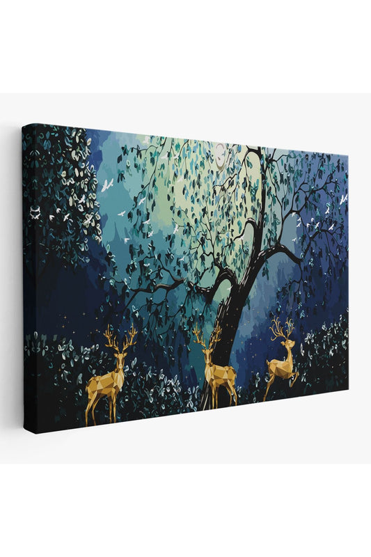 Modern Soyut Tarzda Altın Geyikler Dekoratif Tablo-3687
