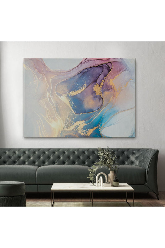 Mürekkep ve Alkol Elementleri ile Mermer Deseni Verilmiş Kanvas Tablo-5030