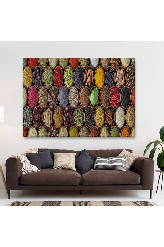 Mutfak Masasın da Baharatlar Dekoratif Kanvas Duvar Tablosu-3518