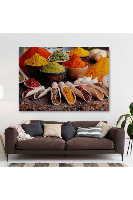 Mutfak Masasındaki Baharatlar Dekoratif Kanvas Duvar Tablosu-3727