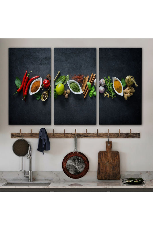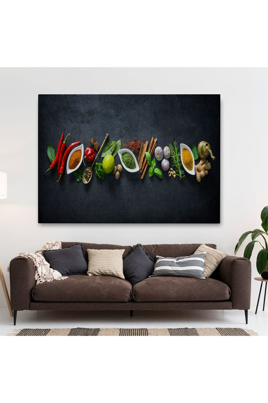 Mutfak Masasın da Baharatlar Dekoratif Kanvas Duvar Tablosu-3569