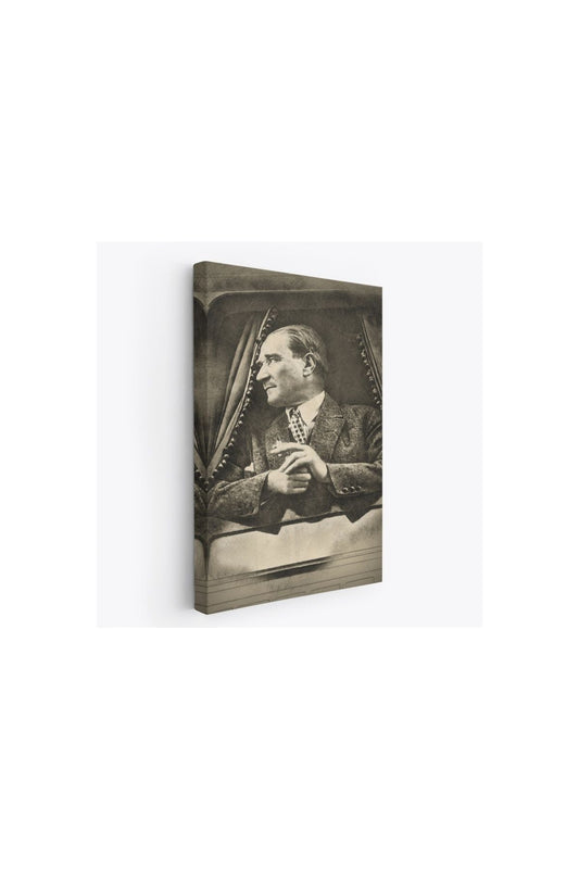 Mustafa Kemal Atatürk'ün Yağlıboya Görünümlü Portre Çizimi Dekoratif Kanvas Tablo-DD-81