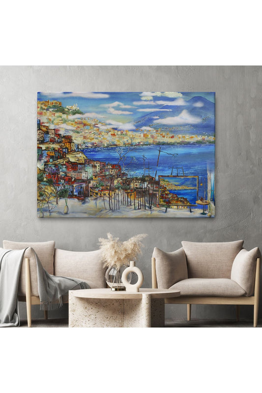 Napoli Manzaralı Yağlıboya Görünüm Dekoratif Kanvas Duvar Tablosu-3503