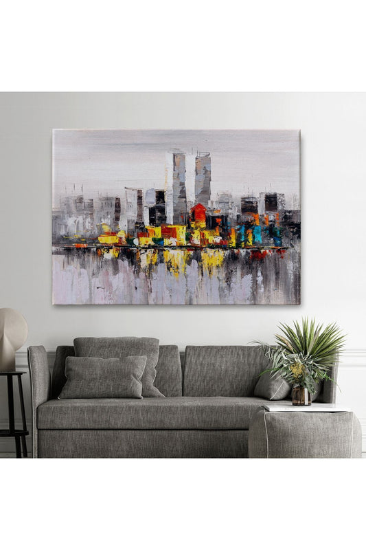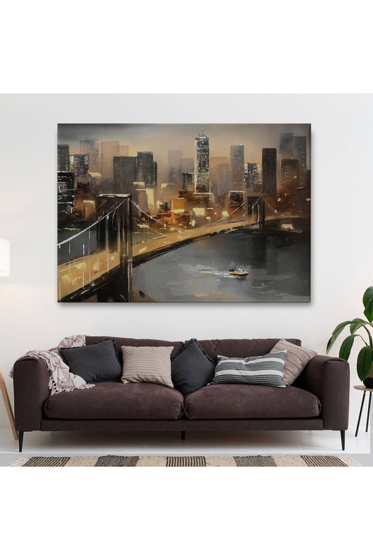 New York Şehir Manzarası Yağlıboya Görünüm Dekoratif Kanvas Duvar Tablosu-3557