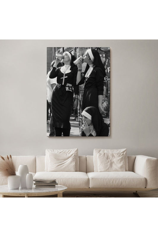 Asi Rahibeler Kanvas Tablo, İçme ve Sigara Parodisi, Siyah Beyaz Sokak Sanatı-5215
