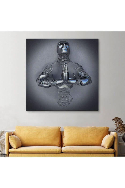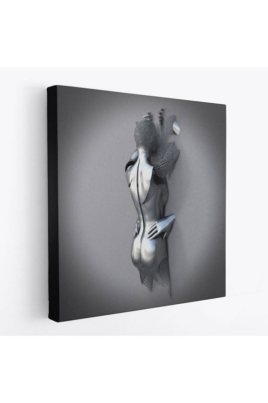 Aşk Sanatı, 3D Efekti Gümüş İnsan, Gri ve Gümüş Metalik Efektli Kanvas Tablo-5353