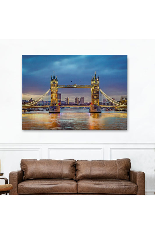 Özel Tasarım Londra Köprüsü Gece Manzara Tablosu-6638