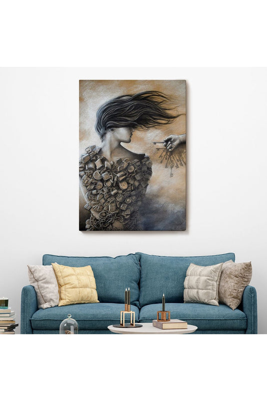 Özel Tasarım Kilitler İçindeki Kadın Duvar Tablosu-6067