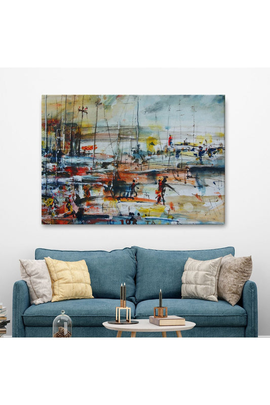 Özel Tasarım, Dekortif BaskıLimandaki Tekneler Kanvas Duvar Tablosu-1185