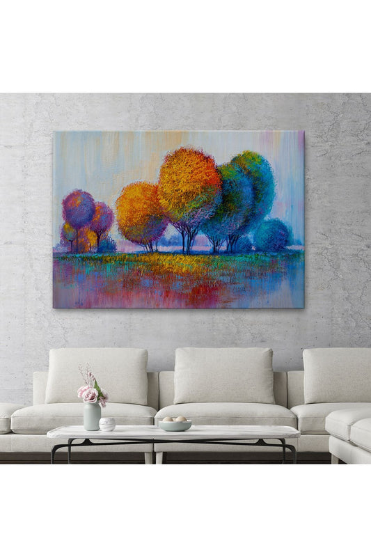 Renkli Ağaçlar Yağlıboya Görünüm Dekoratif Kanvas Duvar Tablosu-3656