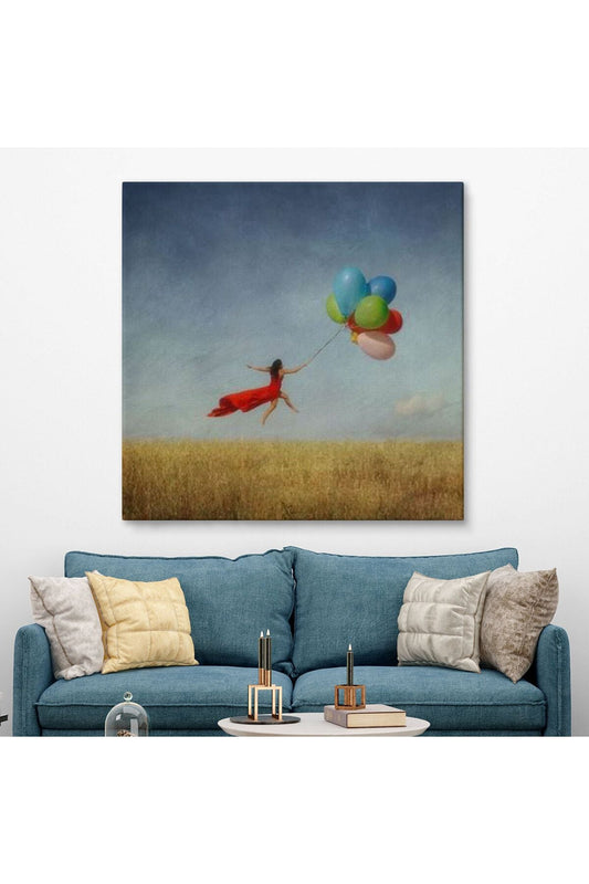 Renkli Balonlarla Uçan Kız Kanvas Tablo-5855