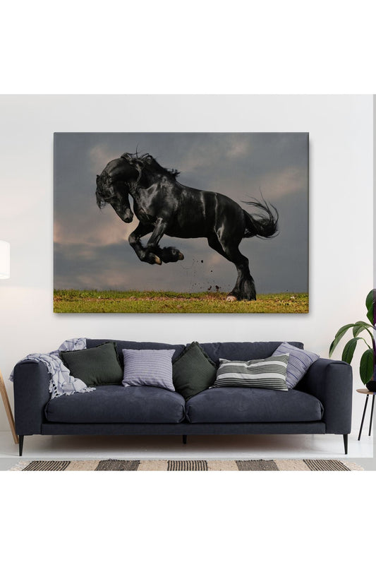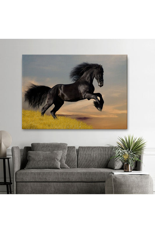 60% İndirimŞaha Kalkmış Siyah At Tablosu-6620