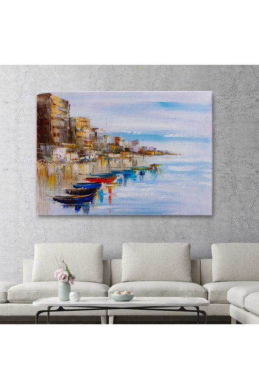 Sahildeki Renkli Tekneler Dekoratif Kanvas Duvar Tablosu-3723