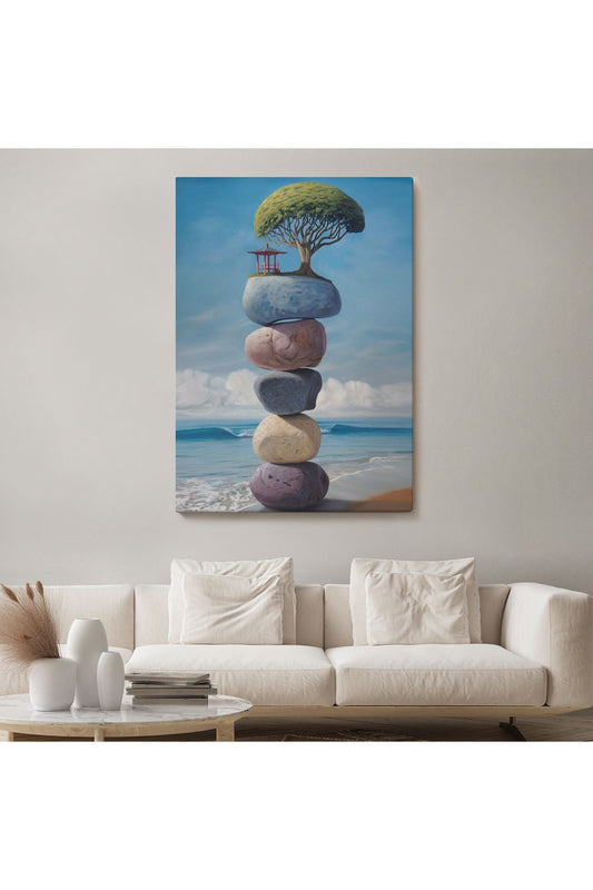 Sahilde Renkli Denge Taşları, Meditasyon, Yoga, Spiritüel Baskı Kanvas Tablo-5239