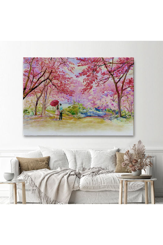 Sakura Ağacının Altındaki Sevgililer Kanvas Tablo-5082