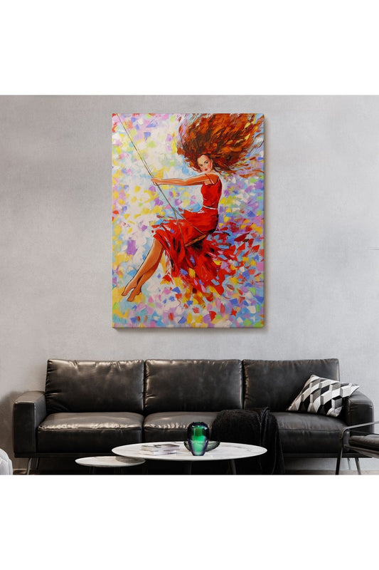 Salıncaktaki Kırmızı Elbiseli Kız Tablosu-6317