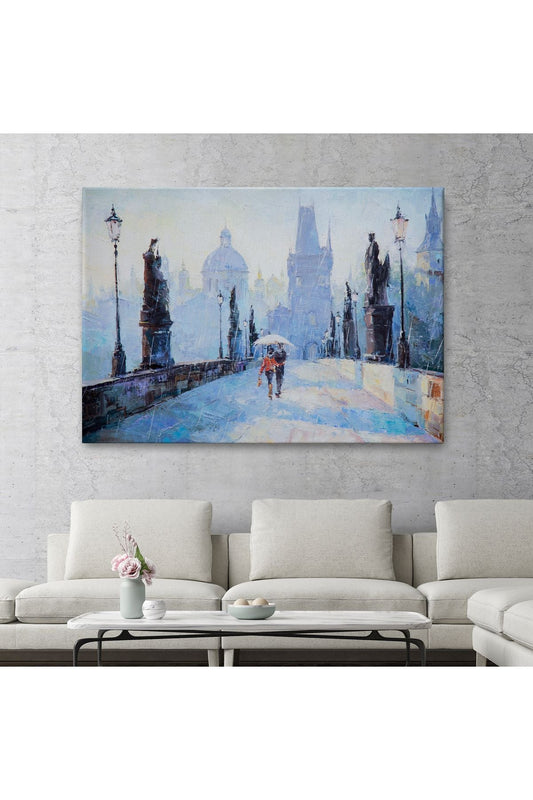Şemsiye Altında Bir Çift Aşık Temalı Kanvas Duvar Tablosu-1187