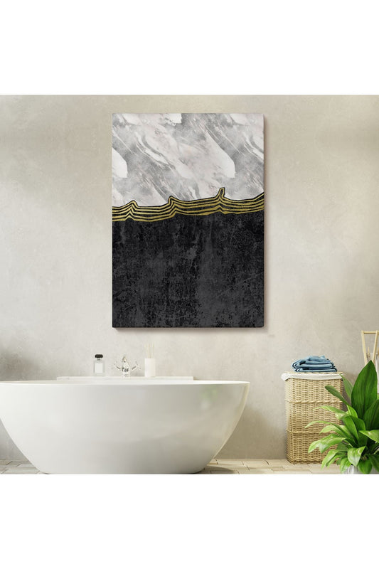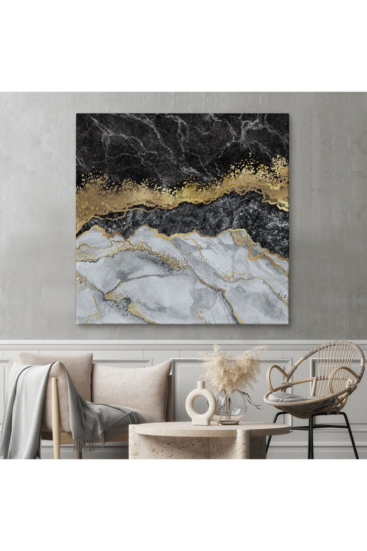 Siyah ve Gold'un Mükemmel Uyumu Mermer Görünümlü Modern Kanvas Tablo-5070