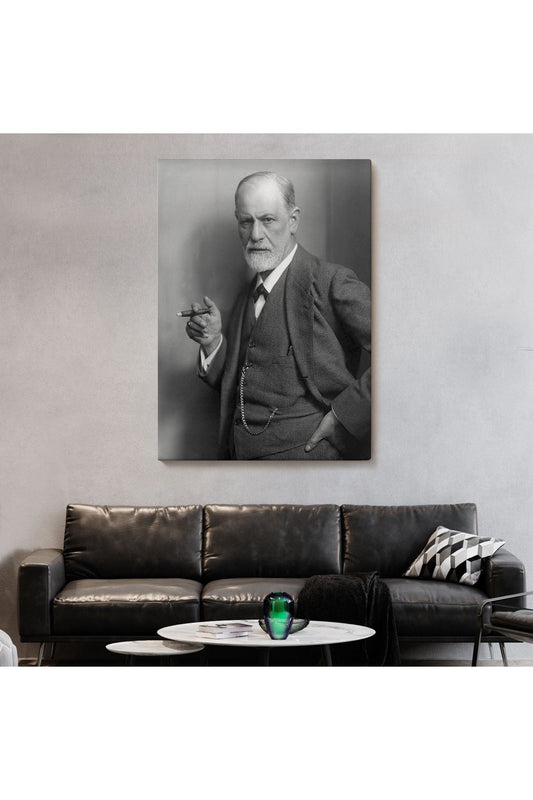 Sigmund Freud Elinde Puro ile Siyah Beyaz Fotoğrafı Kanvas Tablo-5238