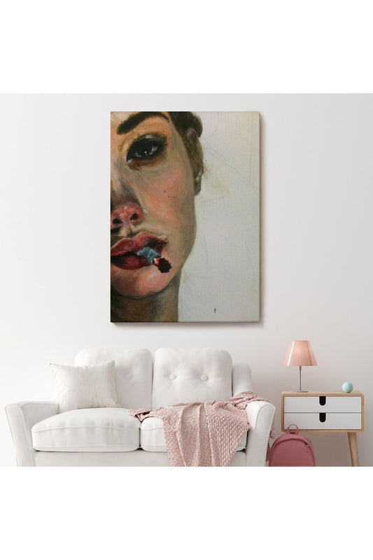 Sigara Içen Kadın Çiçek Detaylı Kanvas Tablo-5877