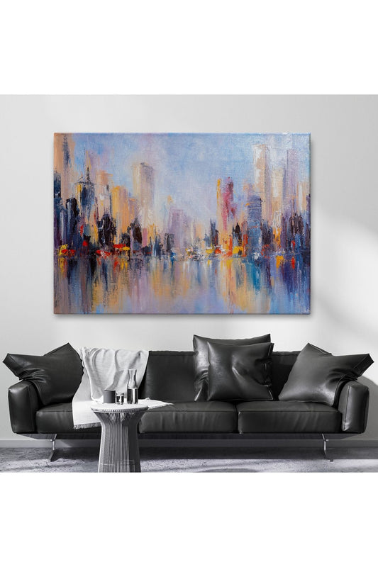 Su Yansimaları ve Şehir Yağlıboya Görünüm Dekoratif Kanvas Duvar Tablosu-3626