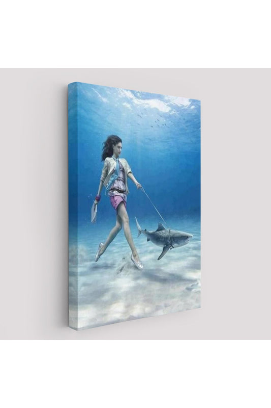 Su Altında Köpek Balığı Gezdiren Kadın Tablosu-6482
