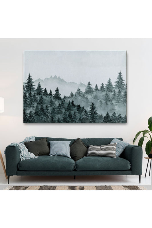 Suluboya Görünümlü Orman Manzarası Dekoratif Kanvas Duvar Tablosu-3644