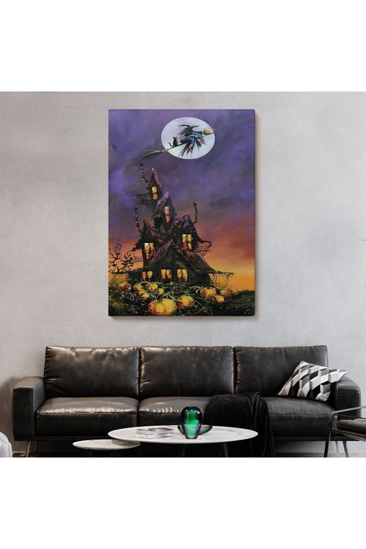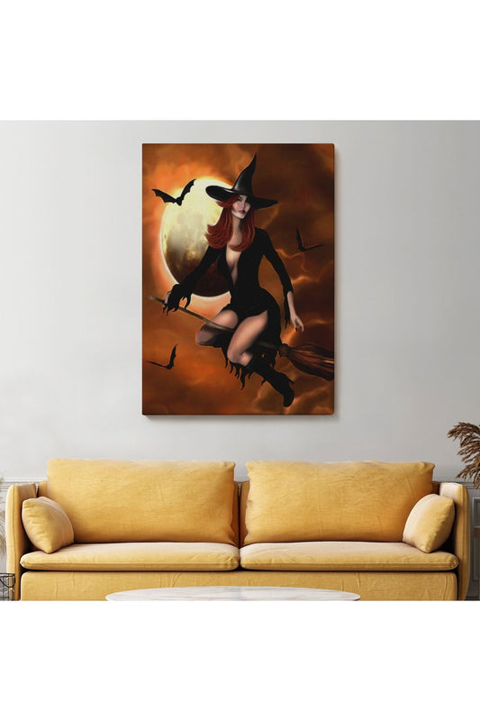 Süpürge İle Uçan Cadı, Cadılar Bayramı Helloven Duvar Tablosu -6086