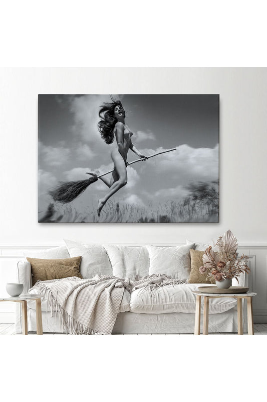 60% İndirimSüpürge İle Uçan Çıplak Kandın Kanvas Tablo-5145