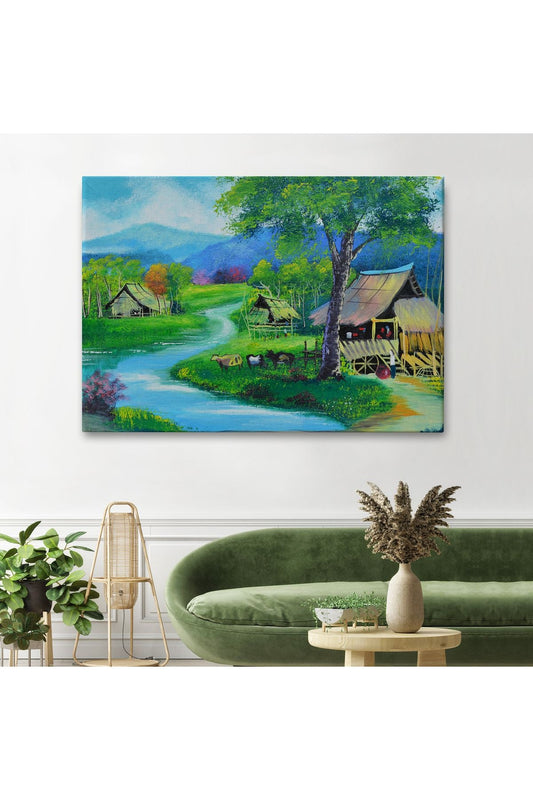 SZ KVS1-Dekoratif Duvar Tablosu-Taşra Köy Manzarası Tayland Kanvas Tablo 3478