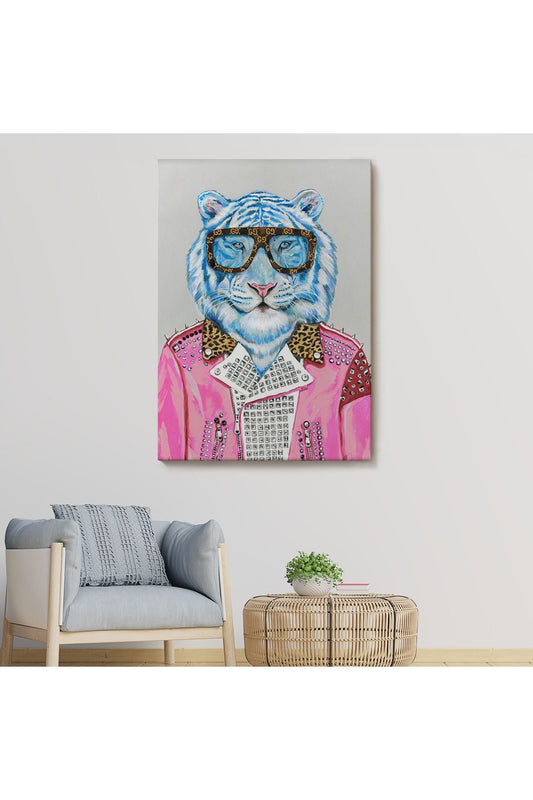 SZ KVS1-Dekoratif Duvar Tablosu-Pembe Ceketli Kaplan Kanvas Tablo 6156