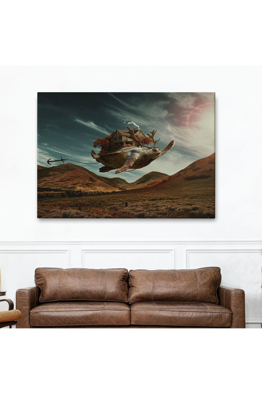 SZ KVS1-Dekoratif Duvar Tablosu-Sürreal Geyik Boynuzlu Kaplumbağa Kanvas Tablo 6560