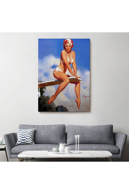 Tramplen Üstündeki Bikinili Sexi Kadın Dekoratif Duvar Tablosu-6157
