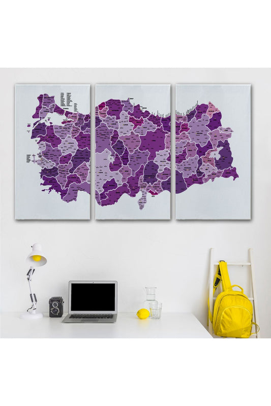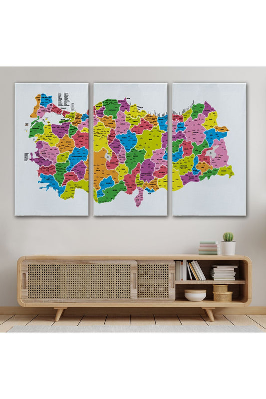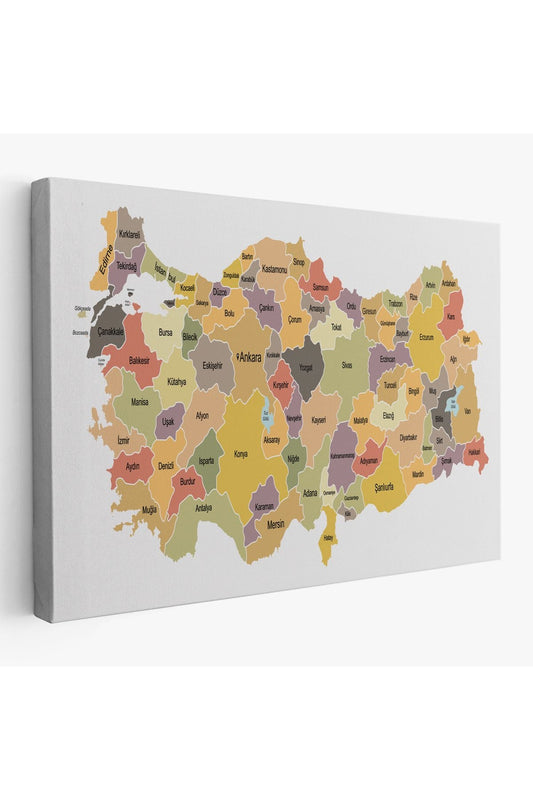 Türkiye Haritası Kanvas Tablo İl ve İlçeli Ayrıntılı Eğitici Dekoratif Tablo 3025