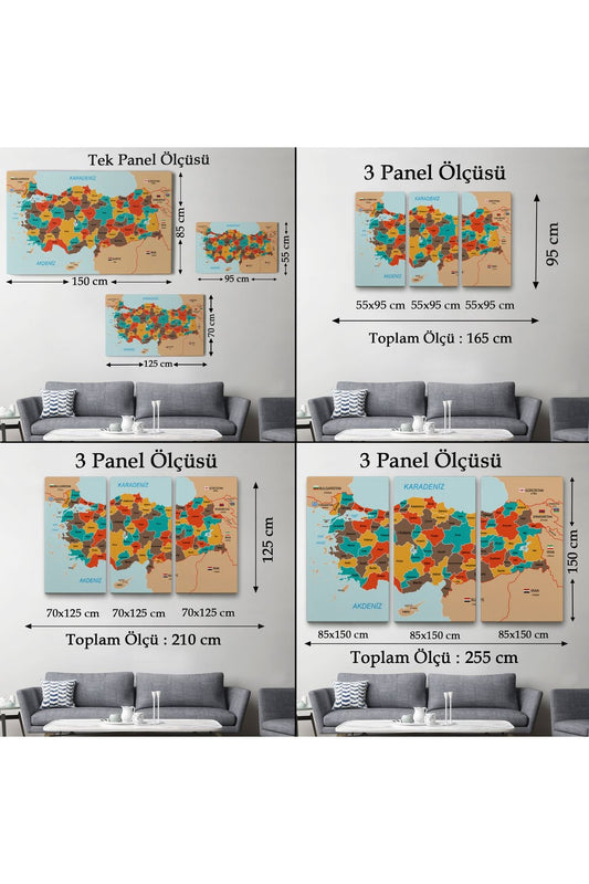 Türkiye Haritası Kanvas Tablo Eğitici ve Öretici Dekoratif Tablo Tablo 3126
