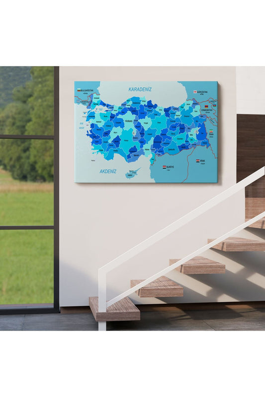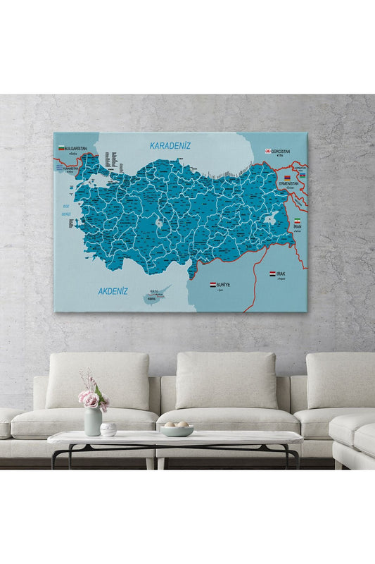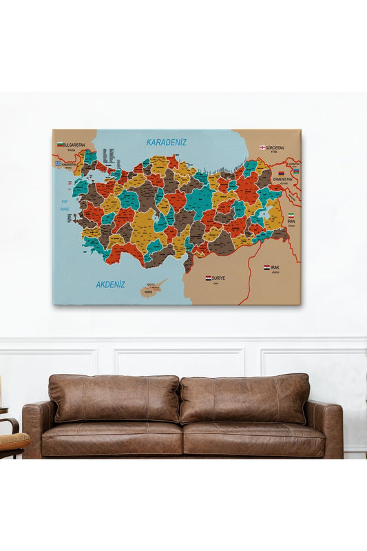 Türkiye Haritası Kanvas Tablo Sınır Komşulu Eğitici Dekoratif Tablo 3094
