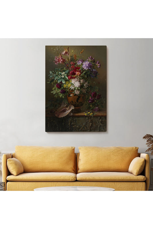 Vazoda Çiçekler Vintage Yağlıboya Görünüm Dekoratif Kanvas Duvar Tablosu-3672