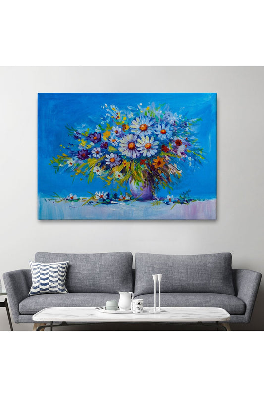 Vazodaki Çiçekler Yağlıboya Görünüm Dekoratif Kanvas Duvar Tablosu-3641