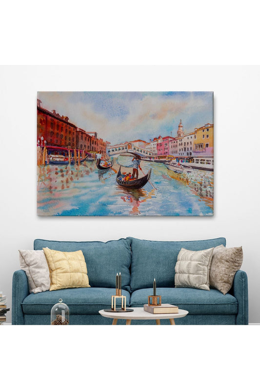 Venedik Kanalları Yağlıboya Çalışması Dekoratif Kanvas Duvar Tablosu-3428