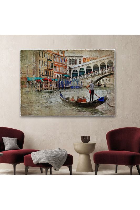 Venedik İtalya Yağlıboya Görünüm Dekoratif Kanvas Duvar Tablosu-3487