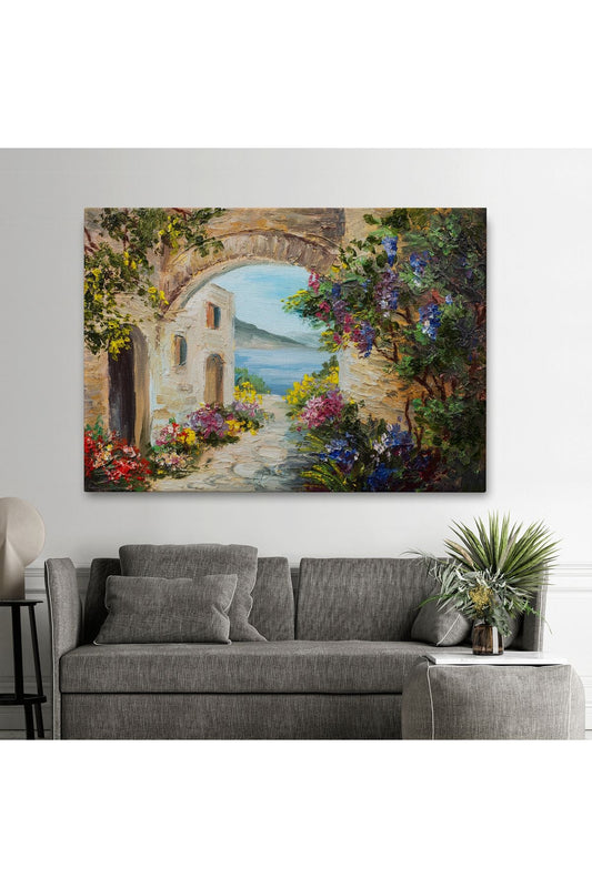 Yaz Manzarası Yağlıboya Görünüm Dekoratif Kanvas Duvar Tablosu-3476